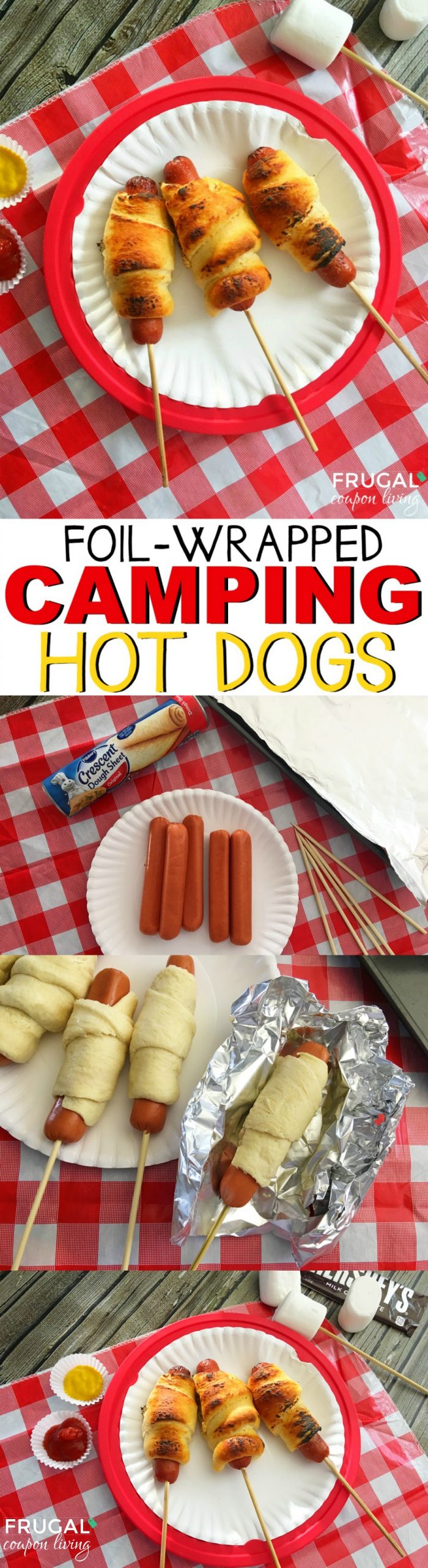 If you loved our Camping Campfire Cinnamon Rolls Baked in Oranges as much as we did, we’re bringing you another easy camping food recipe. All you need to make these wrapped hot dogs are your favorite hot dogs and Pillsbury crescent rolls. They are easy enough to make when you are on a camping trip, and delicious enough that you’ll want to start up your backyard fire pit to recreate at any time! Wrap these delicious bites in foil and load on your favorite hot dog toppings when they’re ready.