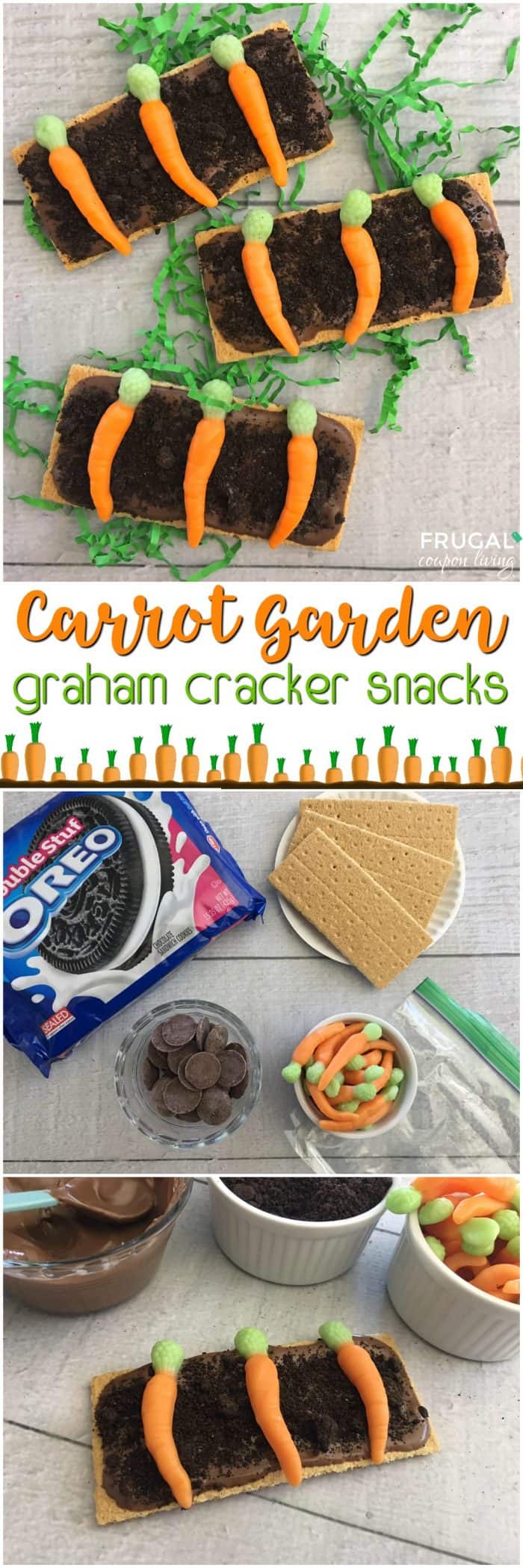 - Top each graham cracker off with 3 gummy carrots, let the chocolate harden, and enjoy!