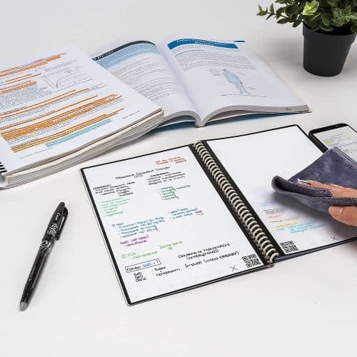 The Rocketbook Smart Reusable Notebook is a must-have for work or school. You can take your notes; upload them to Google drive Dropbox Evernote box OneNote Slack iCloud email and more; and then wipe and use again!