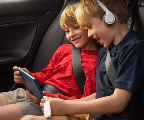 Listen to movies through your AirPods on planes with the Twelve South AirFly Duo. You can use this to connect up to 2 AirPods/wireless headphones to any single audio jack.