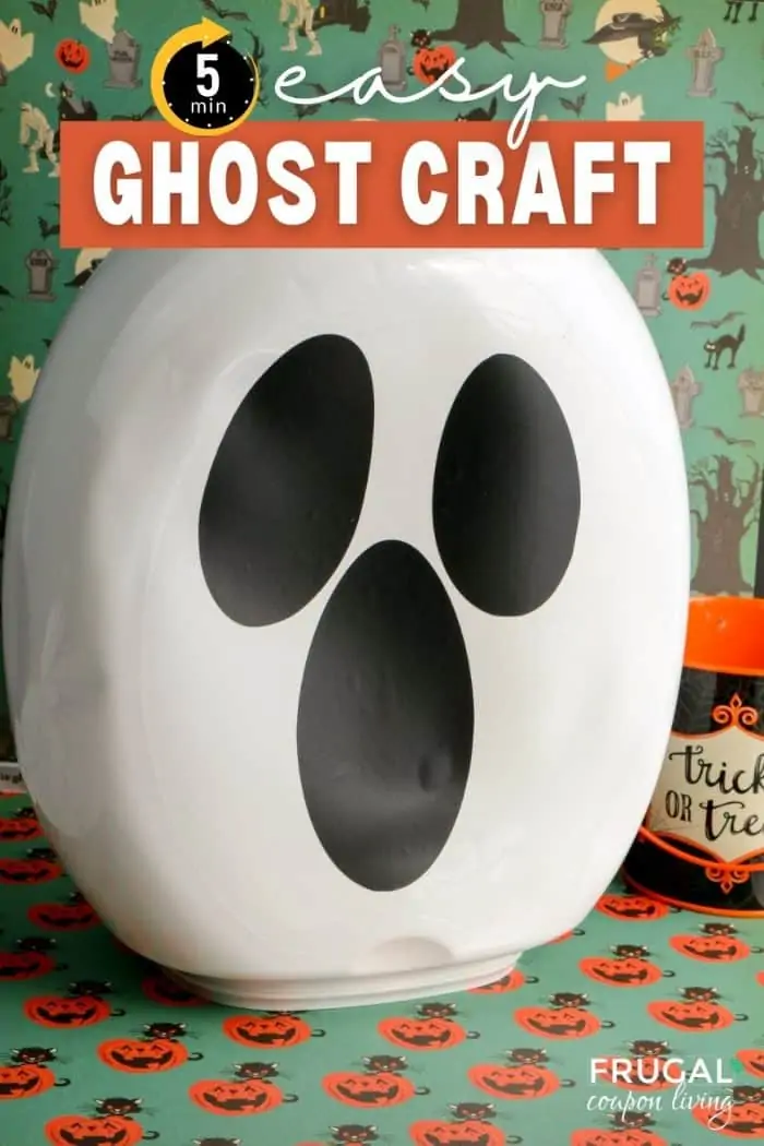 You will never guess the upcycled product that created this fun and exciting Halloween Ghost Craft. Print our ghost template printable and use with or without a Cricut machine. Taking only a matter of minutes and a free ghost face cut out printable, this makes a cute and ridiculously easy Halloween craft for adults or the kids.
