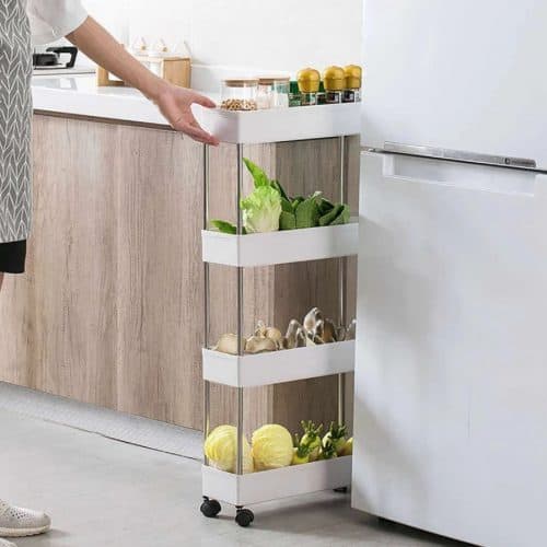 This 4-Tier Narrow Sliding Storage Rack is so neat to have in your kitchen! The narrow width makes it easier to slide into spots, and it’s a great place to store fruits, veggies and more!