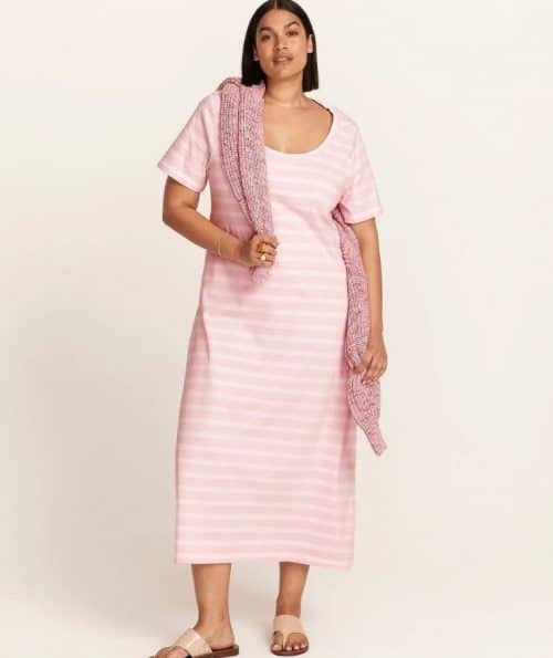 Grab a new dress for Spring and Summer. This Striped Knit Midi Dress is as low as $10.79 (was $98) after coupon code in pink!!