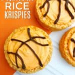 Get a slam dunk with these March Madness easy Basketball Rice Krispies. Perfect for the final four playoffs or a basketball sports themed party.