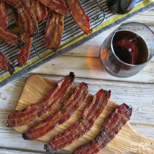 - The bacon will firm up quickly as the sugar cools and gets crispy.