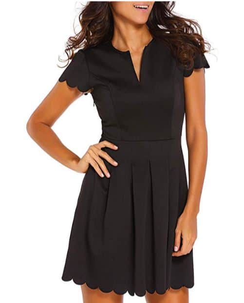 How cute is this V Neck Scalloped Skater Dress?? I love the scallop accents along the sleeves and skirt, and the pleats on the skirt add a lot to this dress as well.