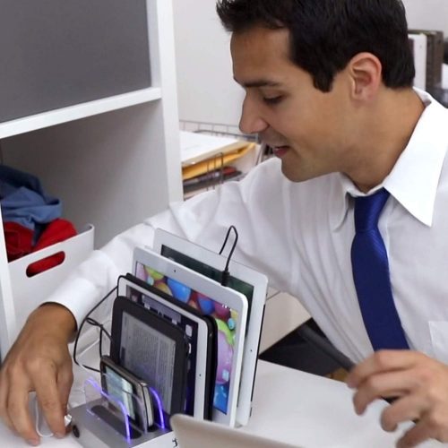 Charge all of your devices in one spot with the Hercules Tuff Charging Station Organizer. This comes with 6 cords – 4 Apple Lightning Cables, 1 Type-C Cable, and 1 Micro-USB cable – perfectly sized to keep your space neat and organized. You can use these to charge your smart phones, tablets and other electronics.