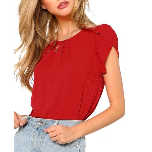 Relax your look in the fashion-forward, laid-back chic of this cap-sleeve Round Neck Basic Pleated Top, featuring a keyhole accent over a lightweight, stretch-infused fabric. You’ll love your cool and comfortable workday look.
