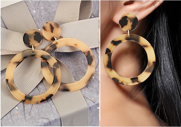 Update your accessories collection and show off your boho side when you punctuate your look with theseAcrylic Resin Drop Hoop Earrings that feature a tortoise motif. At a very affordable price point, these resin tortoiseshell hoops are lightweight and comfortable to wear.