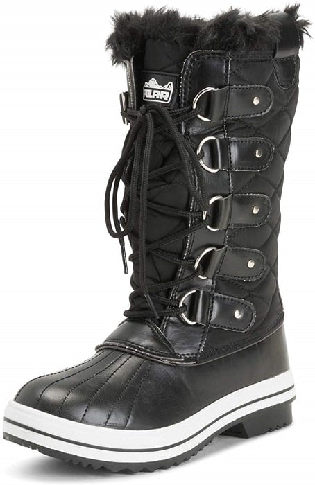 Polar’s cold weather footwear are a must have essential of the winter wardrobe. This mid calf Polar Women’s Nylon Tall Winter Snow Boot has a lace up design and fully lined interior. The calendared slip resistant rubber sole unit gives extra protection against the winter elements. The color coded out-sole is iconic and this boot is available in a palette of fashionable shades and upper materials.