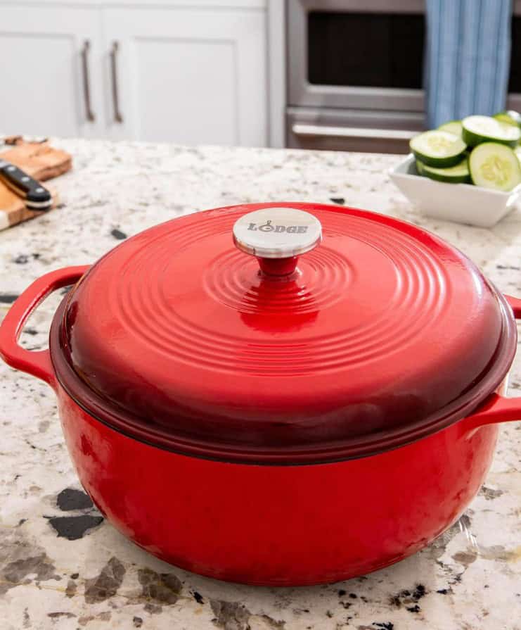 - YOUR GO-TO DUTCH OVEN: A flawless pairing of form and function that doesn’t quit. The Lodge Dutch Oven not only makes your kitchen look good but is an enameled cast iron classic great for preparing and serving memorable meals. Broil, braise, bake or roast your favorite meals in the oven up to 500 Degree F.
