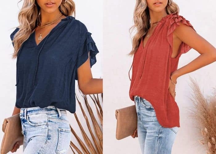 How cute is this top?? I’m loving the style this Women’s Casual V-Neck Drawstring Top has. It looks both casual and dressy at the same time. And, the drawstrings add a lot to it.