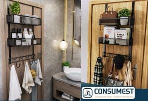 The Consumest Over The Door Organizer will have you hooked with its modern form and versatility as soon as it enters your home! With 3 shelves, 5 hooks, it is brimming with possibilities. Use the unique hooks to create a hidden cabinet door storage for items like essential oils and medication. Or utilize unused vertical space in your kitchen and put this space-saver on display to keep scissors, baggies, condiments, and other essentials handy-without eating up drawer or counter space. Want to spice up your kitchen and your cooking? This shelf organizer also makes for a stylish spice rack! No screws or hardware required. The door rack is easy to assemble; just hang it on your door, and the protective padding prevents scratching of the door. Your door can be opened or closed normally as usual.