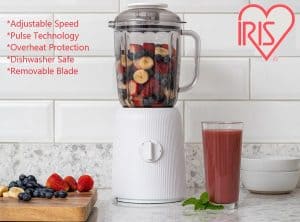 Easily blend and mix smoothies, shakes, and more with the IRIS USA 3 Speed High Power Professional Grade Blender. Just plug it in and get to blending with the simple one-dial controls. This 50 oz. capacity blender is pre-marked to make measuring ingredients a breeze. This blender is the perfect size for any kitchen to make all of your favorite blended items, such as smoothies, milkshakes, sauces, dips, and dressings. With the titanium-coated stainless steel blades, rotating up to 26,450 times per minute, blend your mixture to your desired consistency, whether that’s coarse or fine or somewhere in between. Both the blender jar and the cover are made from impact-resistant Tritan™, for extra durability that outshines traditional glass blender jars. Clean up is a breeze; with dishwasher-safe components, just pop them in the washer for a no hassle clean.