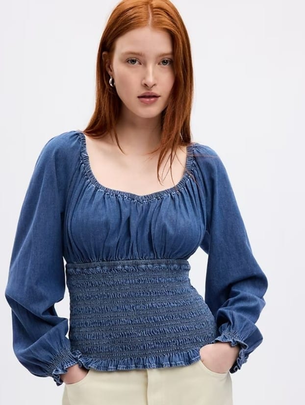Grab this Puff Sleeve Smocked Denim Top for $29.99 (was $70) after the EXTRA 50% off at checkout!