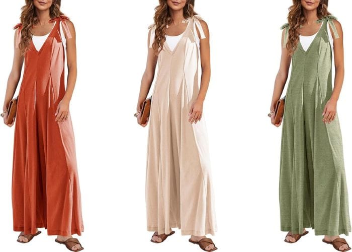 Your effortless done-in-one, this sweet jumpsuit from is the charming instant outfit. It features a v-neckline, billowy wide-leg design, tie shoulder straps, side pockets and dropped armholes. Whether you live the casual lifestyle year-round or dream of making the great escape, this casual loose jumpsuit for women is full of timeless styles under the sun.