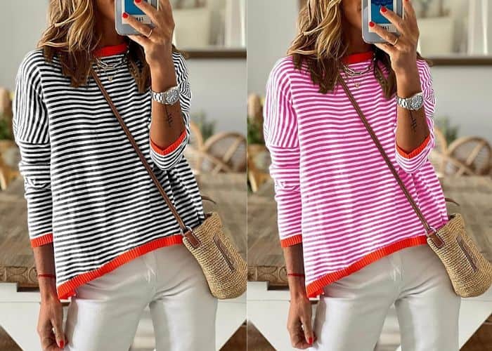 This stylish and lightweight sweater is 100% cotton. It’s super soft and comfortable, and the stretchy and lightweight fabric is perfect for daily wear. Pair this striped sweater with jeans, long pants, leggings, sandals, heels, boots and a necklace for a cute look! This pullover sweater is perfect for layering or wearing on its own.