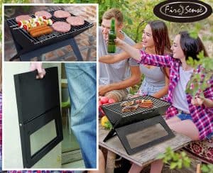 The Fire Sense Folding Portable Charcoal BBQ Grill is the perfect portable charcoal grill. The clever design allows this unit to stand 13 inches high for use and then fold to one inch flat in seconds. This mini grill comes with a charcoal rack and grill rack included. Constructed of high-heat-resistant-painted steel, this sturdy grill folds flat to create its own carrying case. Use it on the patio, in the back yard, or take it with you when you go camping or tailgating!