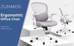 The lumbar support of the ZUNMOS Ergonomic High Back Swivel Mesh Desk Chair mimics the natural curve of spine movement, providing comfort for long hours of sitting while maintaining perfect balance. The back can be adjusted to reclining at 90°- 120° and the seat height can be adjusted from 17.4″ – 20.6″, with adjustable flip up and down armrests. The 360 degrees swivel multi-directional wheels ensure smooth-rolling for longer periods of time, providing freedom of movement. The seat cushion is made of durable textile material, which is breathable while soft and comfortable.
