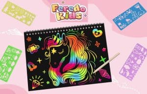 Kids can create cool illustrations, doodle, jot notes, create arts and crafts projects, and express themselves freely with these fun scratch paper sets! They’re made with the finest paper with a rainbow of colors and patterns hidden underneath and won’t easily tear. Scratch your great artistic inspiration onto the art paper, cut out your beautiful designs to hang for ornaments around your home or classroom to showcase children’s creations, and watch the colors magically appear with every scratch.