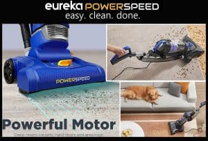 The powerful eureka NEU182A PowerSpeed Bagless Upright Vacuum Cleaner is easy to maneuver and designed for whole-home clean with a 5 height adjustment. The dynamic motor and brush roll can lift stubborn and heavy debris. Plus, the 6″ wide nozzle cleans more with quickness. It works well on carpets, shag rugs, hard floors, etc. Smooth wheels ensure hardwood floors won’t sustain scratches or gouges. The 1L extra-large capacity dust cup holds more dirt and requires less frequent emptying. Clean more, empty less. Multiple accessories included: a quick-release handle connected to the stretch hose for above-floor cleaning. A 7-inch-long crevice tool, dusting brush, and upholstery tool help clean hard-to-reach areas. Extract dirt, pet hair, and freshen up your car, curtains, ceiling, or door frames. For your convenience, they are all stored right on board.