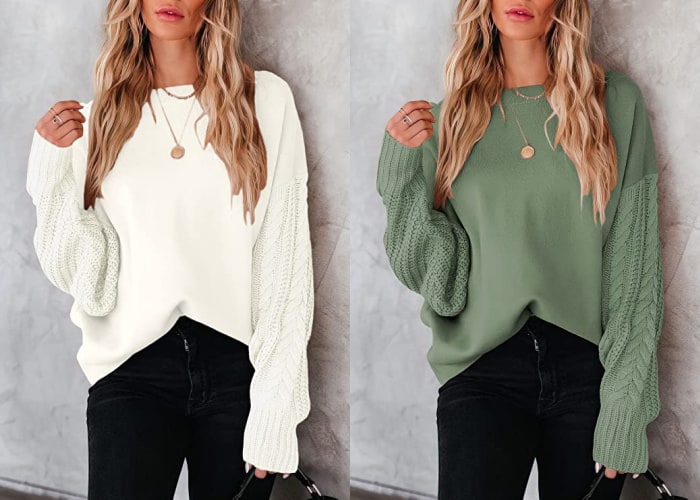 Grab a new sweater or two for your closet. This Drop Shoulder Cable Knit Sleeve Sweater looks so comfy and cozy. It’s perfect to pair with your favorite skinny jeans or leggings.