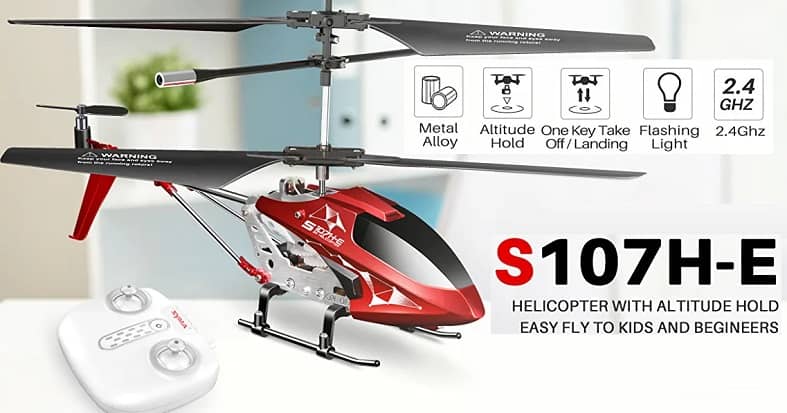 Ready to fly – the SYMA Remote Control Helicopter is easy for kids and beginners to fly. With One Key Take Off, the helicopter will hover at a certain altitude automatically. With One Key Landing, the helicopter will fly down slowly and land on the ground automatically before the motor stops. The control box features Up, Down, Left, Right, Forward and Backward, and the copter has built-in Gyro to hover in the air. No crashing, no replacing parts, this RC Helicopter is super easy to fly by people of all skill levels. This copter is ready to fly out of the box, no assembly required. Be the coolest kid on the block! Syma is the leading innovator in remote controlled aircraft.