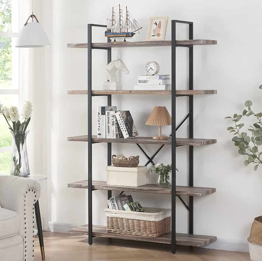 Add a vintage yet industrial look to the room with this 5-Tier Bookshelf. It has plenty of room to display your favorite books, decor items and knick knacks.