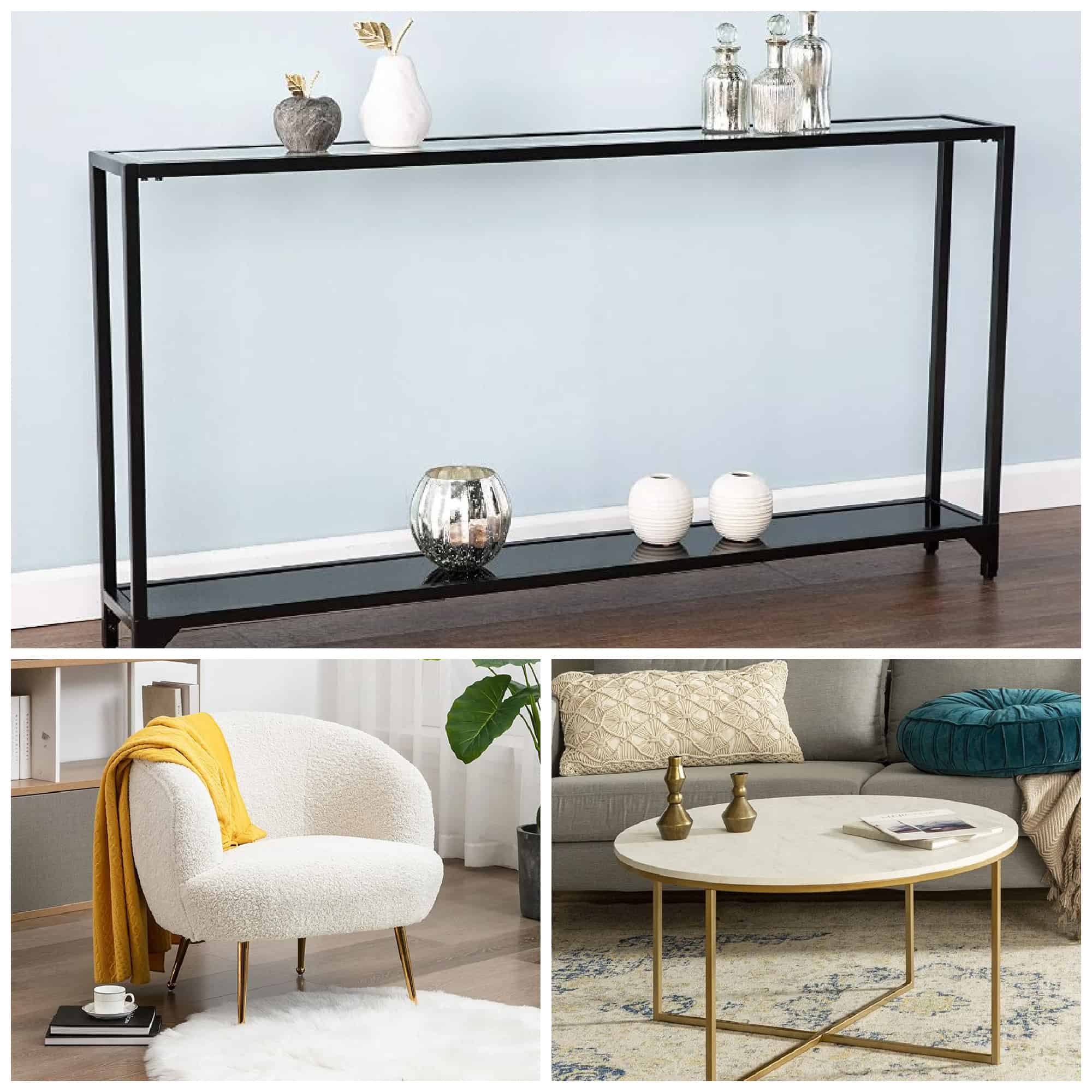 You can’t go wrong with a simple coffee table, like this Walker Edison Modern Glam Round Coffee Table. I love the marble top and the gold base. It has a modern yet luxe look.