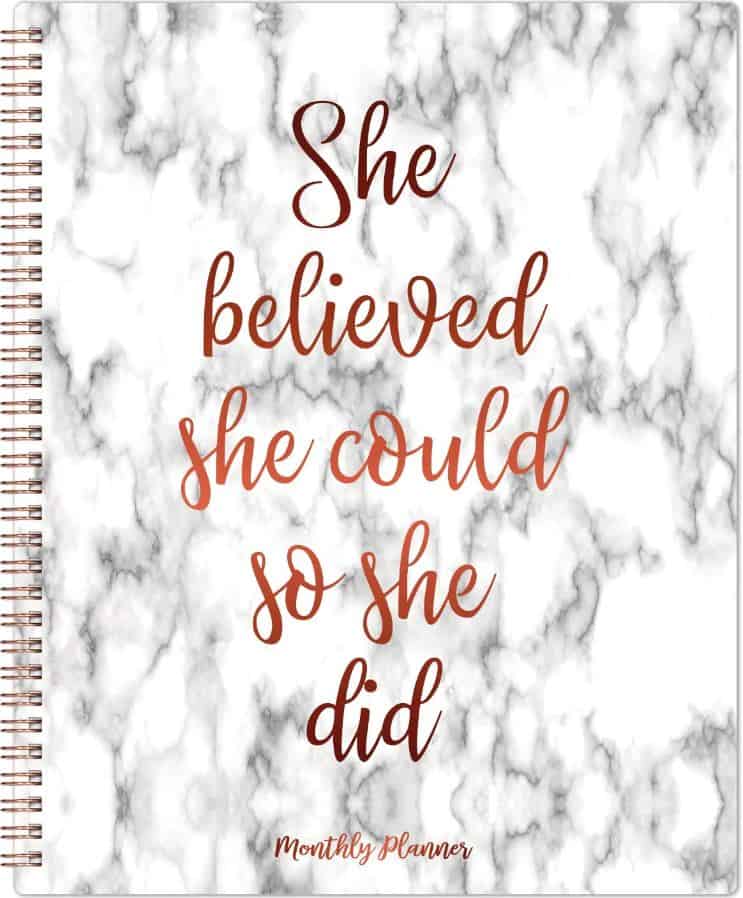 I love the quote She Believed She Could so She Did, so I love that this Monthly Planner has it on the cover as a daily reminder. There are 6 months reference calendars on monthly view pages for long term planning for your busy lifestyle.