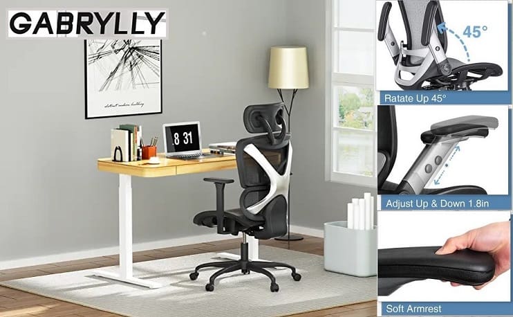 Gabrylly ergonomic office chairs will help you maintain a neutral posture, keeping you comfortable. Featuring lumbar support, as well as adjustable seat and armrests, these chairs provide full-body support. These ergonomic chairs offer a broad range of motion, allowing you to lean back whenever you feel like you need to do one of those stretches.