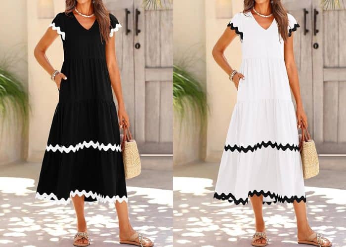 This is such a neat dress that’s so different than what we usually see. I’m loving the trim on this Ric Rac Trimmed Dress. It adds so much to the dress’s style.