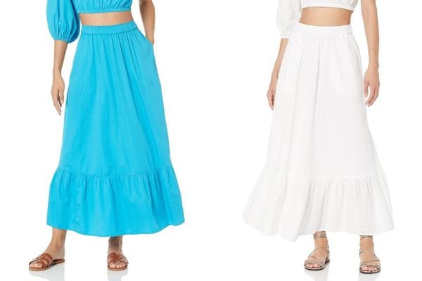 You can never have too many skirts in your closet, and this flowy The Drop Women’s Anupa Cotton Tiered Midi Skirt is a must-have. I love the white for the beach, and the black is perfect, too. The other bright colors are great for Summer weather.
