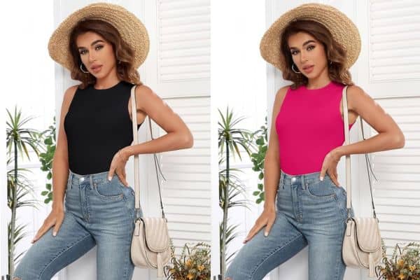 This tank top is made from material that’s super soft, comfortable, breathable, stretchy and skin-friendly. It features sleeveless, crew neck, racerback, ribbed knit, and a slim fit. You can match with your jeans, leggings for a casual look, or with your shorts or skirts for chic street fashion, and pairing it with a denim jacket, cardigan, heels, flat sandals, sneakers and nice necklace.
