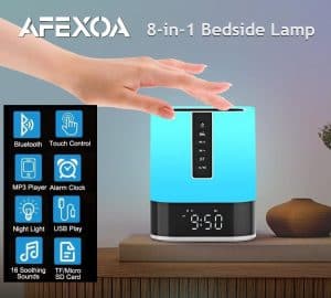 Introducing the AFEXOA Touch Control Bedside Lamp, a fusion of form and function. Its sleek design complements any decor, making it a versatile addition to any space. Wake up to built-in alarm clock with a snooze function. The built-in dimmer lets you set a custom color scheme, while the backlit buttons allow for easy control in dark rooms. This all-in-one sleep lamp combines wake up light, alarm clock, colorful night light and bluetooth speaker in one. It provides soft light for working, reading or relaxing at night: the brightness is adjustable to 3 levels. Multi functional creative and modern design make it an ideal gift choice on any occasions. The atmosphere music light is also a nice decorative clock for bedroom, living room, office, study and etc.