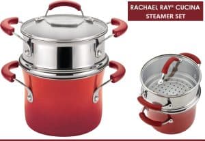Steam your way to meal time success with the multipurpose Rachael Ray Brights Sauce Pot with Steamer Insert. Vegetables, dumplings and tamales steam to perfection in no time and the steamer insert makes it a cinch to boil and strain pasta for a delicious spaghetti dinner. The saucepot is perfect on its own for making stews, soups, and sauces, too. High-quality nonstick for easy food release and fast cleanup. Oven safe to 350°F.