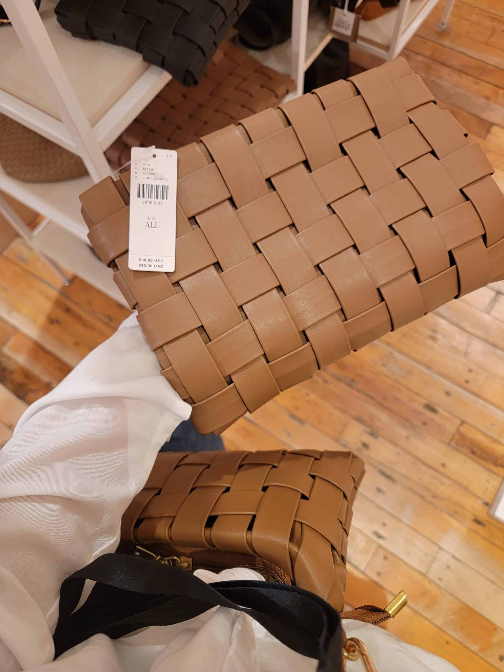 As I entered Anthropologie, my eyes were immediately drawn to a display featuring the Woven Clutch. It looked exactly like the bag I was carrying. I had no idea that the bag I purchased off Amazon was a look-a-like bag.