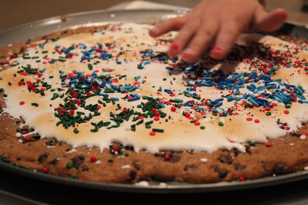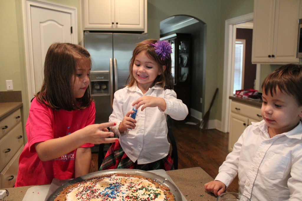 Then, the kids and I made the Christmas Cookie Pizza to take with us for some Christmas Caroling with our church (recipe HERE):