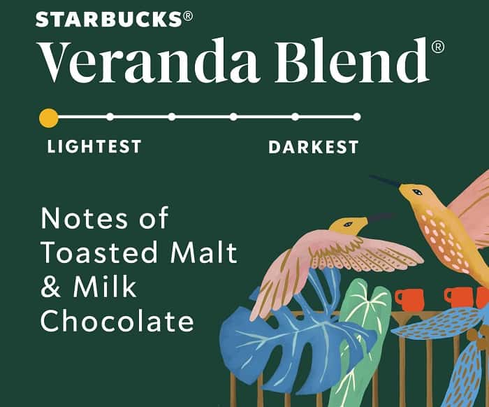 Our lightest roasted coffee with notes of toasted malt and baking chocolate. Starbucks delivers exceptional coffee cup after cup with Veranda Blend lightly roasted coffee. We’re updating our K-Cup pods to be recyclable! Starbucks K-Cup pods are designed for use with the Keurig Single Cup Brewing System. Keurig and K-Cup are trademarks of Keurig Green Mountain, Inc., used with permission.