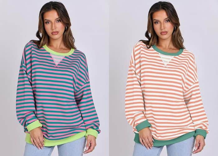 Fall weather is coming, and that means it’s time to pull out all the sweatshirts! Treat yourself to some new ones and grab this Striped Oversized Sweatshirt for your closet.