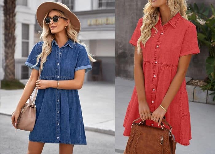 If you’re looking for a new dress to be a staple in your fall wardrobe, this Women’s Denim Babydoll Tiered Dress is it.