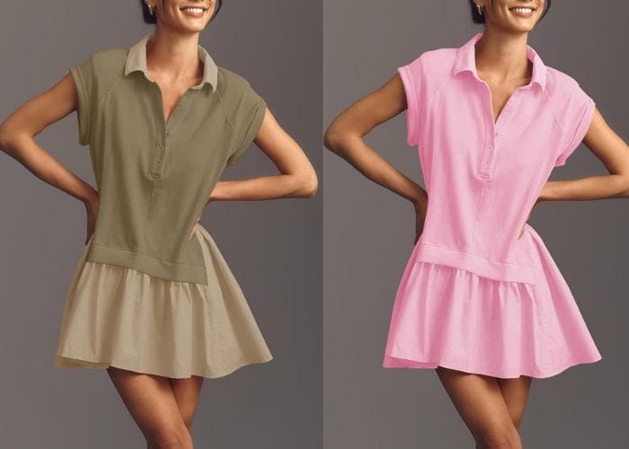 This dress features a collared neck, short sleeves, and a tiered design in the back. The high waist design gives it a relaxed fit, and it’s easy to pair with boots, booties or leggings and sneakers.