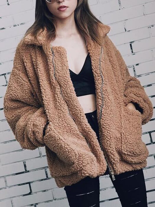 Teddy Jackets are the latest item to make a splash in the fashion industry and you absolutely cannot go wrong with this Women’s Lapel Long Sleeve Faux Shearling Coat! Notch lapel – Long sleeves – Front zipper closure – Patch pockets – Solid color – Faux shearling construction – Lined.