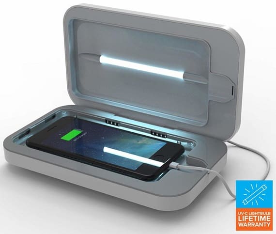 This PhoneSoap Sanitizer and Charger features revolutionary bacteria-zapping technology, as seen on ABC’s Shark Tank and tested and proven on the Discovery Channel. Sitting on a UV transparent plate, and surrounded by scientifically proven germicidal UVC light and a reflective interior, PhoneSoap kills 99.99% of all bacteria on your phone.