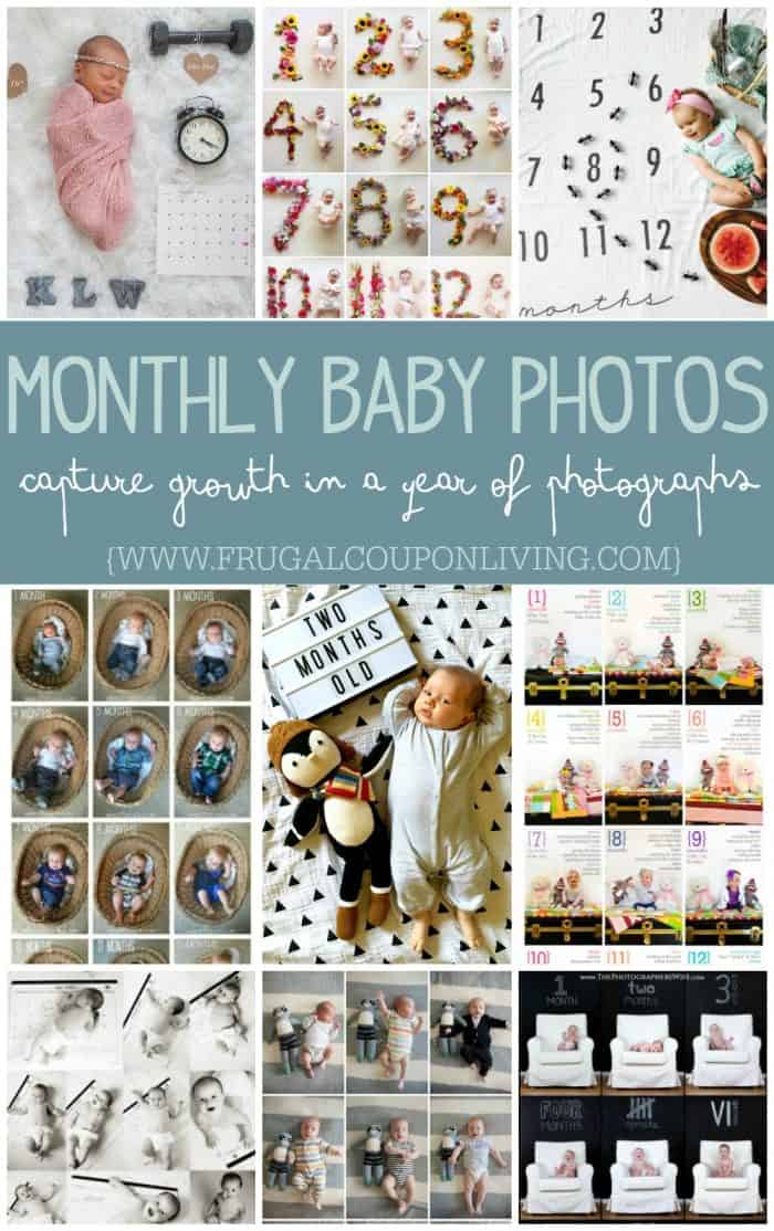 Watching baby grow can be lots of fun (and oh so sad too!) No matter the emotions it brings, every mama watch to capture that growth spurt in time. Capture those special moments with baby photographs every month. There’s no need for a professional photographer. These adorable DIY ideas for monthly baby photos will give you amazing photo inspiration during baby’s first year of life.