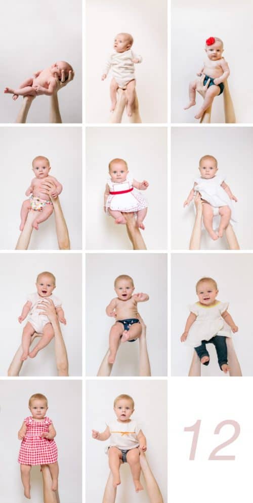 We are expecting and with the upcoming birth of a newborn, I am in nesting mode. Nesting mode for me includes planning how I am going to take those adorable 0 to 12 month photos (and as I plan and look at ideas, wondering if I will give up after 3 months!) Take a look at the creative Monthly Baby Photo Ideas below.
