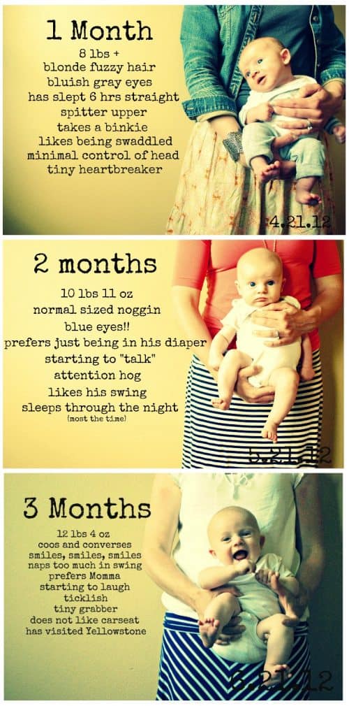 Include mom holding the little one and update the photo with some Descriptive Baby Milestones like this idea from Larissa Another Day. This can easily be done with a baby app on your phone or with a free photo editing tool like Canva.