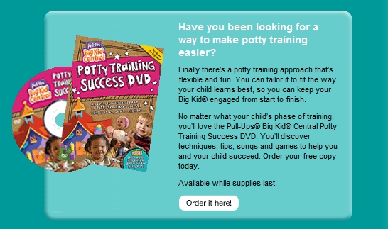 One of my potty training successes today was this FREE Pull-ups DVD from Huggies. There are about 8 songs on there including THe Potty Dance song that have been on repeat.