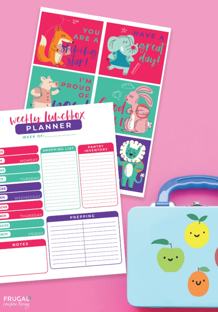 Get organized! Our School Lunch Planner can help you keep track of your kids lunch ideas. It includes a spot to keep a running shopping list and pantry inventory, so you’ll be able to make your grocery list fast every week. Comes with free lunchbox notes too! Pin to Pinterest.