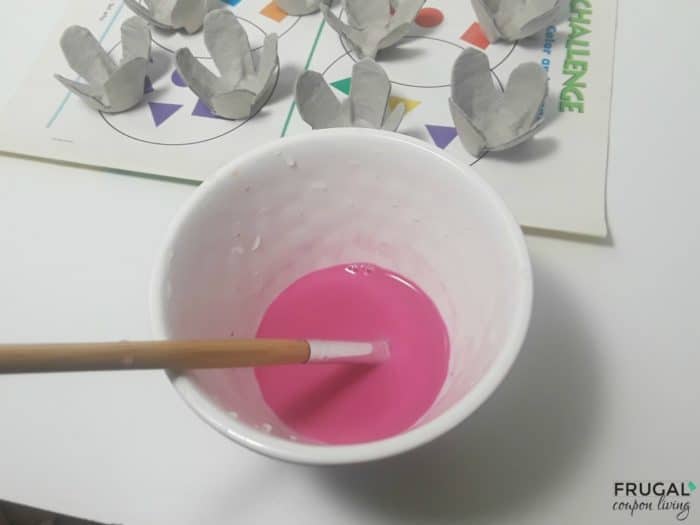 Once painted, allow the paint to dry and then paint your choice of color. We chose Easter colors like light pink, light purple, a pastel blue, a Easter grass green color.